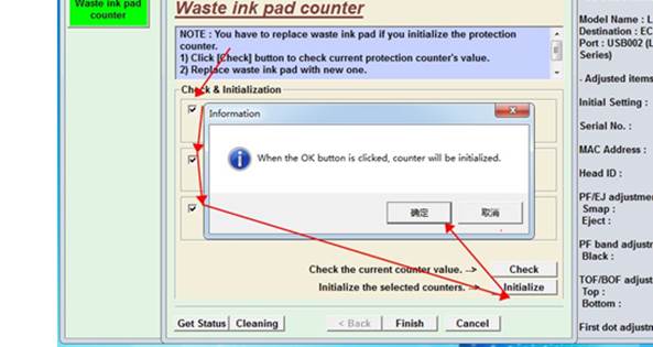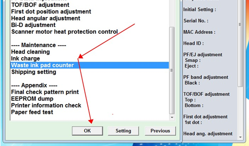 3.选择[Waste ink pad counter]然后点[OK]. 如图。