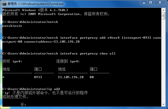 netsh interface portproxy add v4tov4 listenport=173 connectport=80 connectaddress=23.105.196.28
